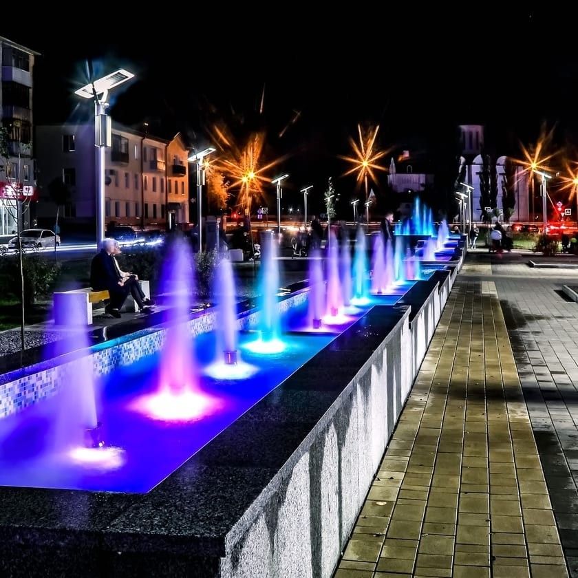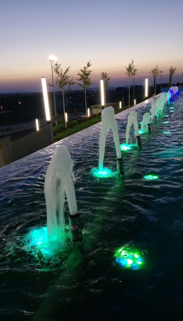 وتولي مؤسسة حور اهتمامًا خاصًا بتكامل النوافير مع باقي عناصر تنسيق الحدائق، مثل المسطحات الخضراء، النباتات، الممرات، والإضاءة. ويتم دمج إضاءة LED حديثة مع النوافير لإبراز جمال حركة المياه خلال ساعات المساء، مما يمنح المكان منظرًا جذابًا ولمسة فنية راقية. كما يتم اختيار ألوان الإضاءة بعناية لتتناسب مع طبيعة التصميم العام.